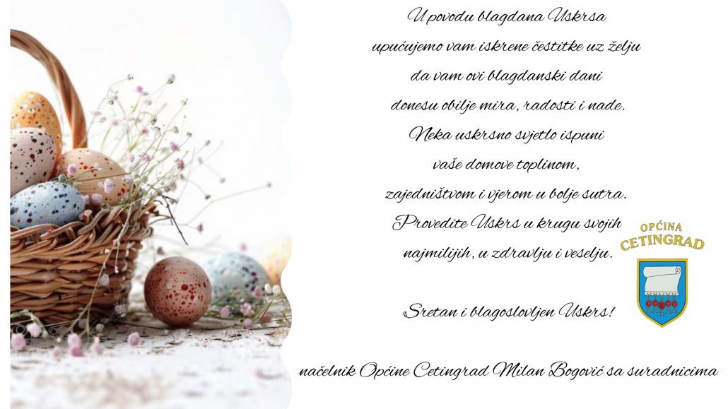 Sretan Uskrs! Vijesti 03/04/2026/by Cetingrad https://www.cetingrad.hr/wp-content/uploads/2026/04/Cetingrad-Uskrs.png 1080 1920 Cetingrad https://www.cetingrad.hr/hr/wp-content/uploads/2017/09/logo-3.jpg Cetingrad2026-04-03 07:34:112026-04-02 09:34:53Sretan Uskrs!